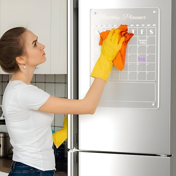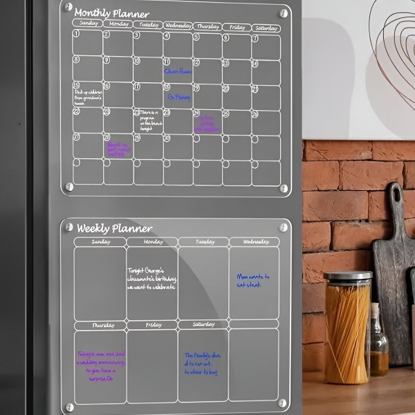 Das elegante, klare Acryldesign verleiht Ihrer Küche nicht nur einen modernen Touch, sondern bietet auch eine effiziente Möglichkeit, Ihre täglichen Aktivitäten zu verwalten.