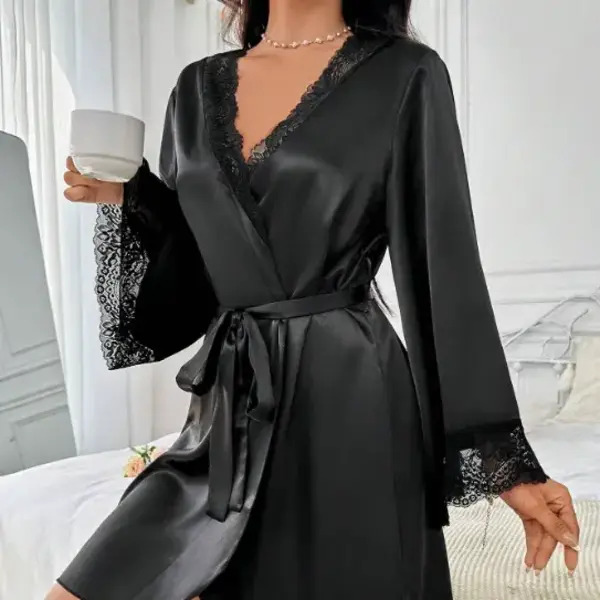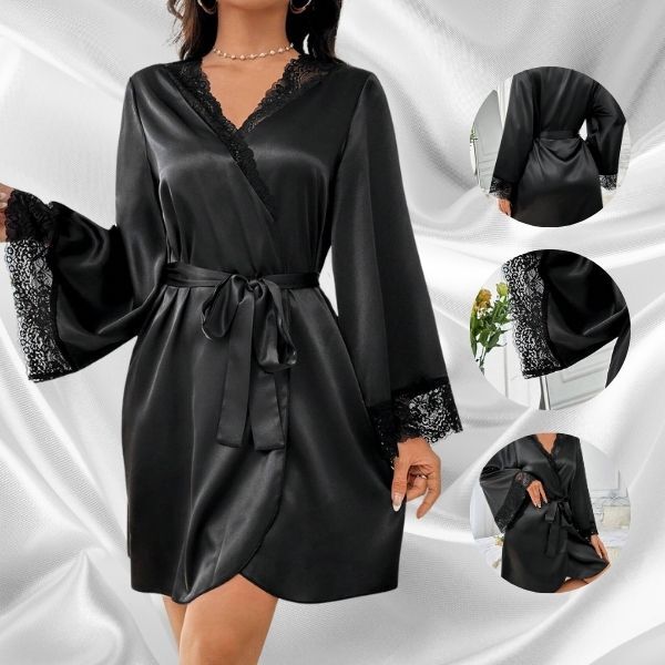 Diese Robe kombiniert seidigen Stoff mit zarten Spitzendetails, damit Sie sich selbstbewusst und verführerisch fühlen. Perfekt, um romantische Momente mit Ihrem Liebsten zu feiern.