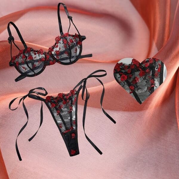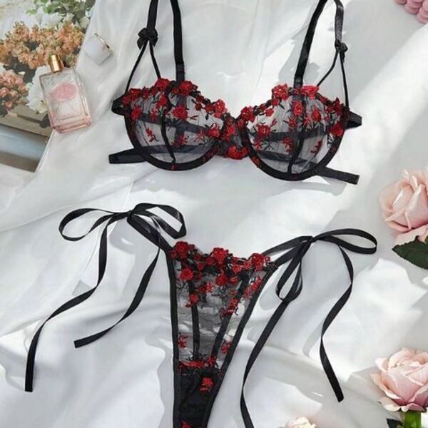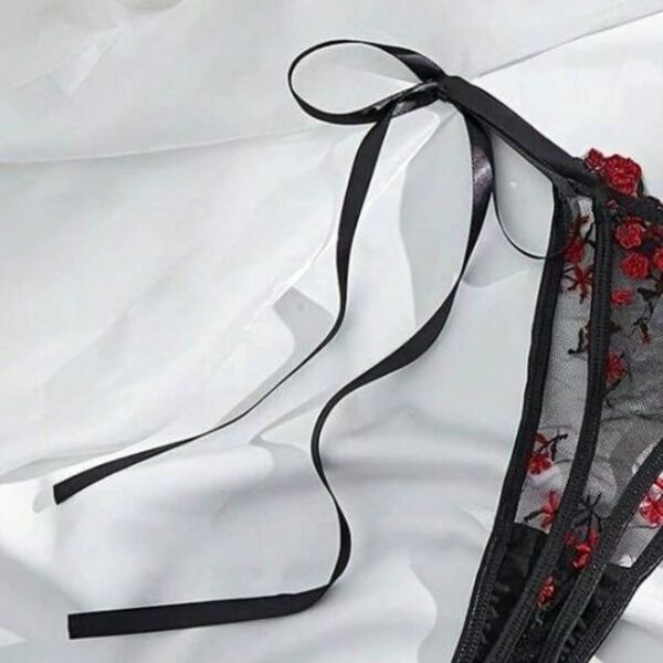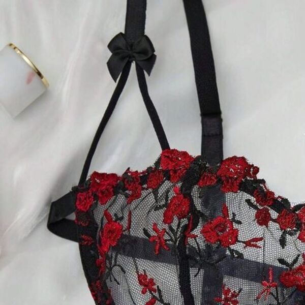 Lassen Sie sich von der sexy Blumenstickerei auf durchsichtigem Stoff verführen und verleihen Sie Ihrer Intimbekleidung einen Hauch von Weiblichkeit und Eleganz.