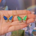 Der Schmetterlingsanhänger ändert seine Farbe, wenn sich deine Körperwärme im Laufe des Tages verändert.
